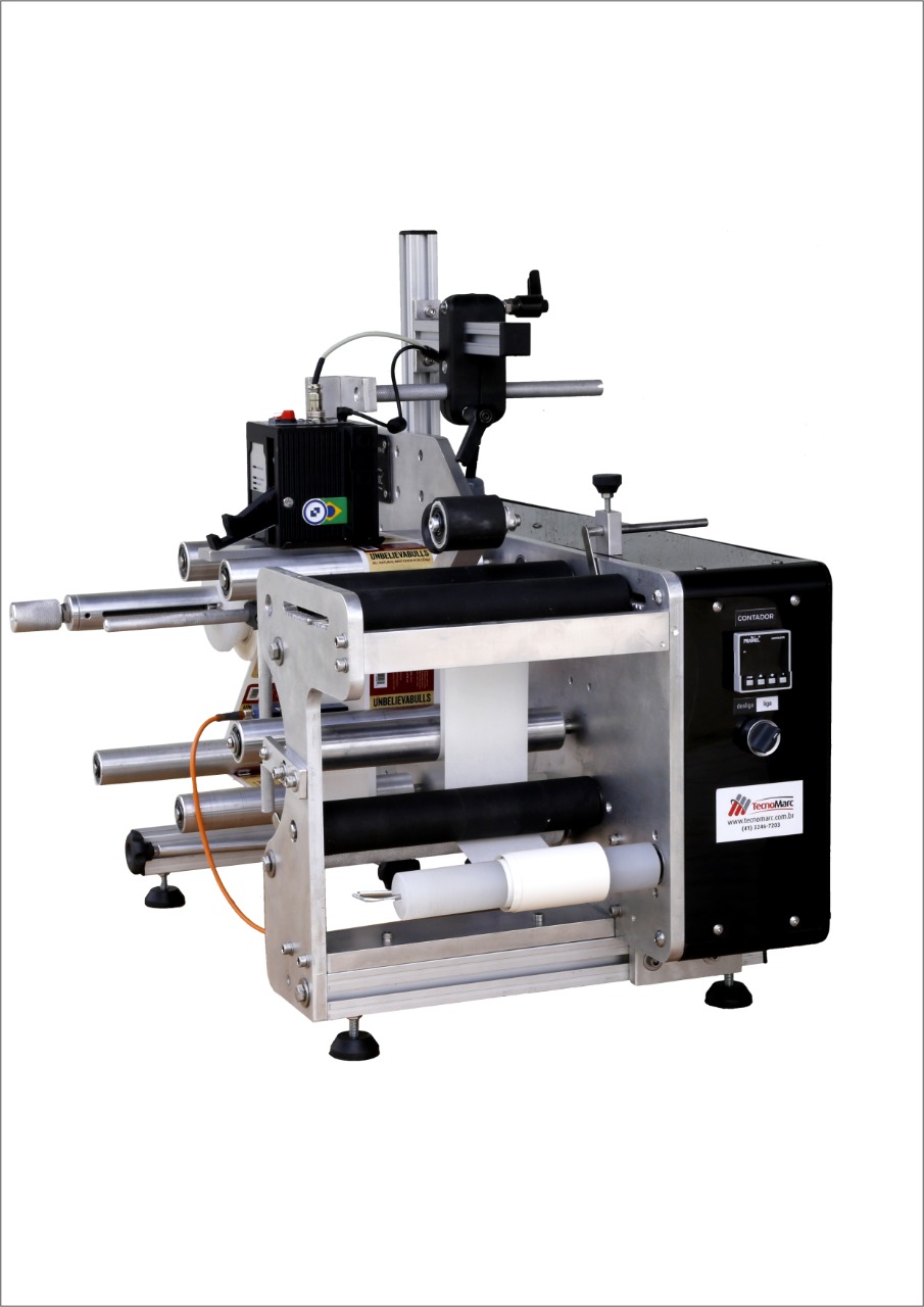 Rotuladora semi-automática para embalagens cilíndricas, ideal para industria de cosmético , alimentício e produtos químicos.